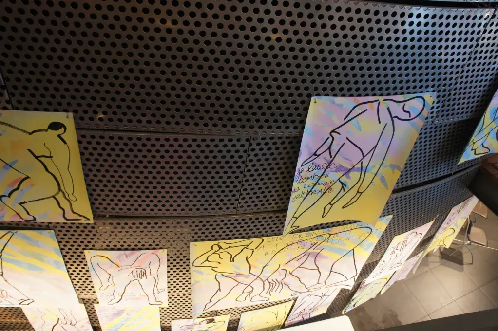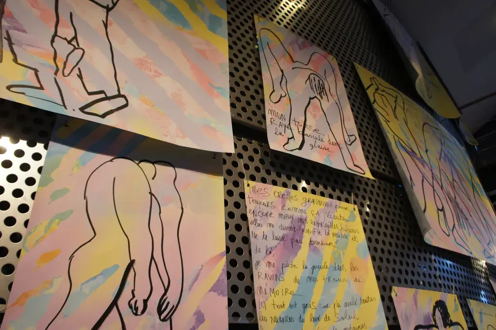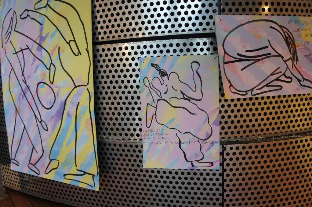 Dessiner les corps en mouvement afin de décaler les points de vue et les représentations des corps dansants, en mêlant traits bruts, couleurs joyeuses et textes poétiques.